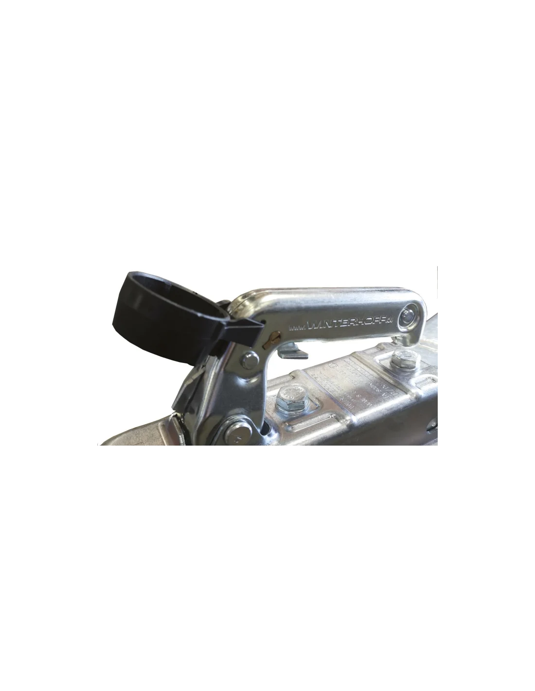 Ce dispositif se place directement à l’intérieur de la tête d’attelage et bloque le mécanisme en empêchant le tirage de la poignée. Une fois installé, il rend impossible l’accouplement ou le désaccouplement non autorisé de la remorque.