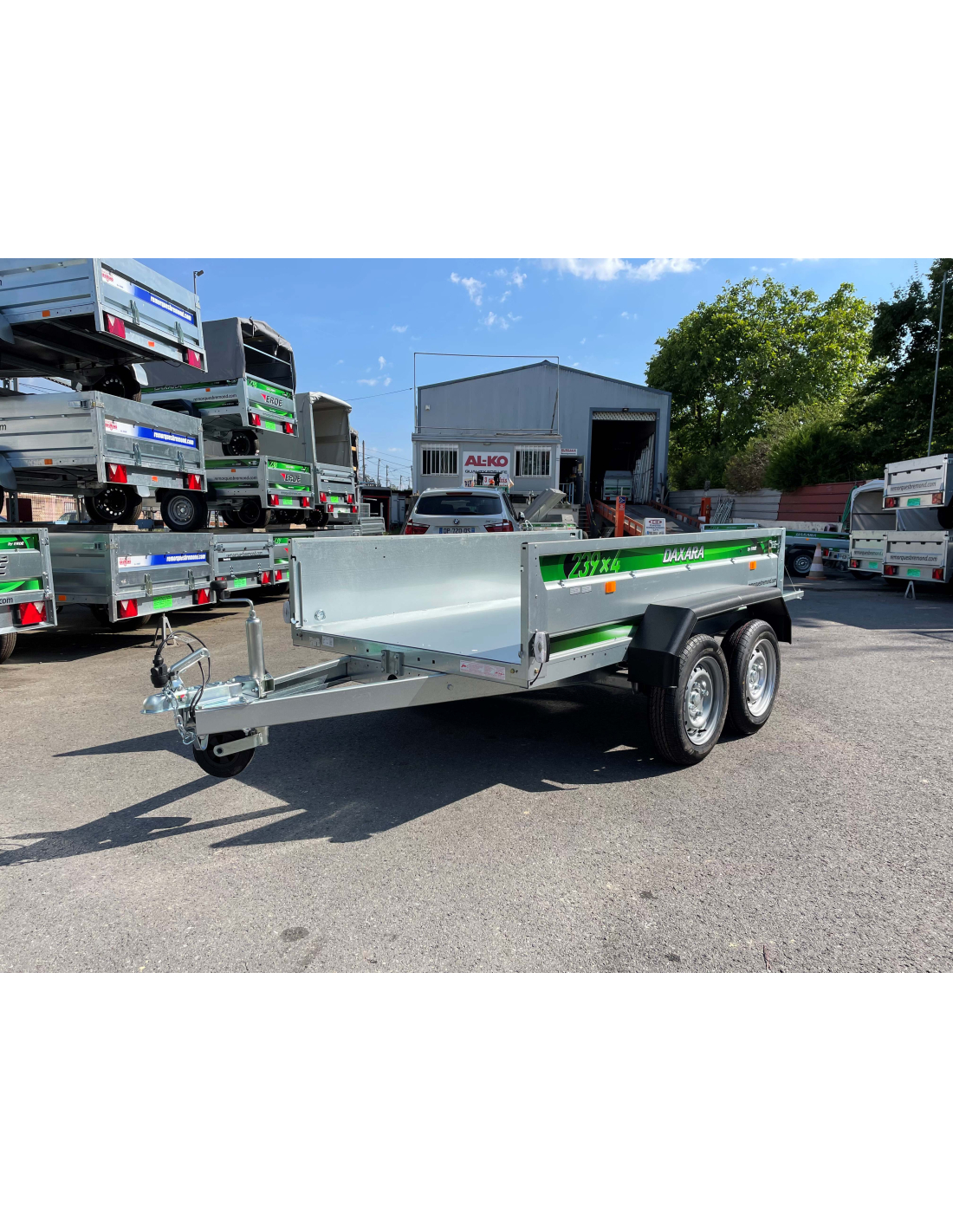 Tarif TTC : 1 791 €Caractéristiques techniques de la remorque Daxara La remorque Daxara possède une caisse renforcée avec 4 ridelles doublées.
