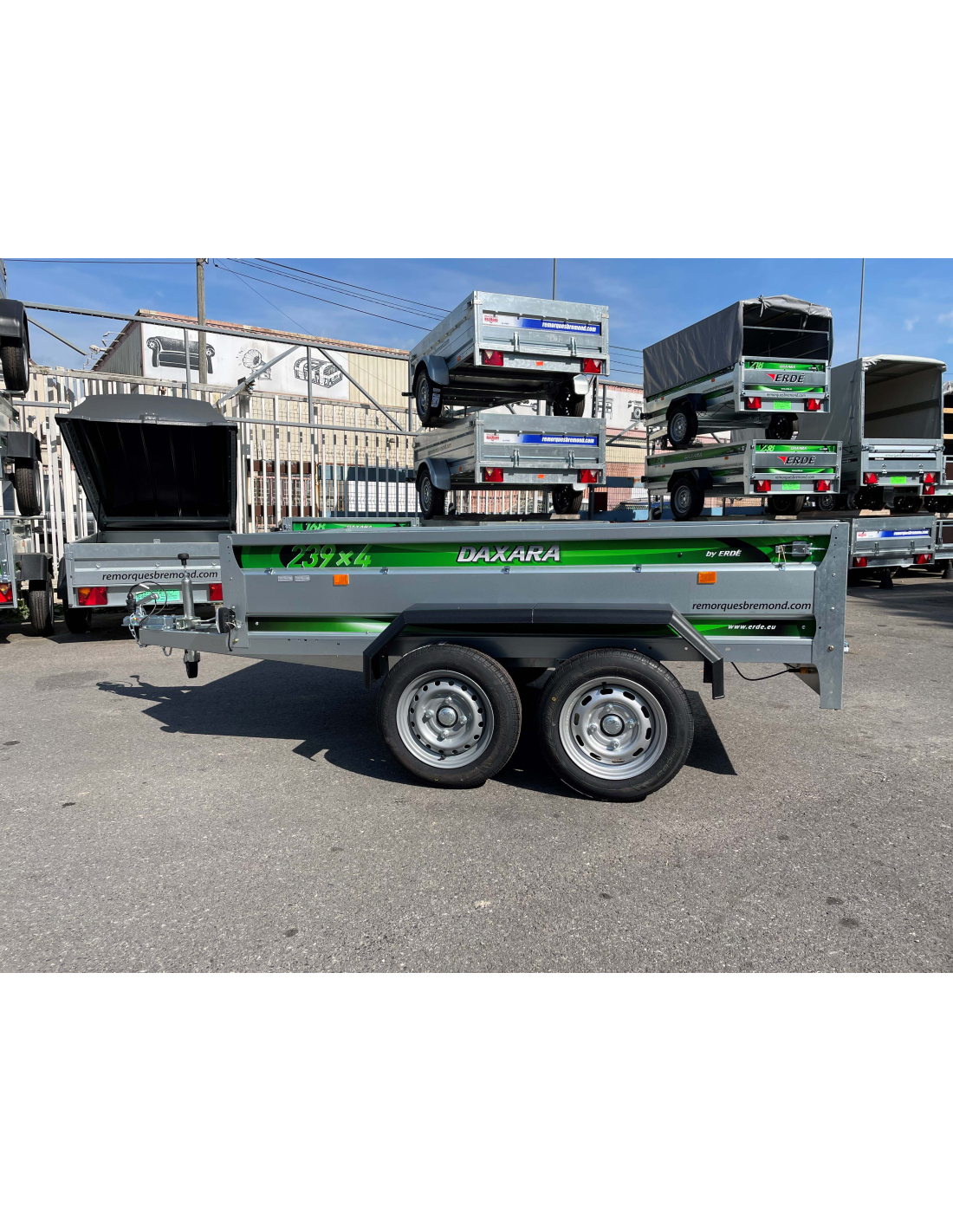La promotion actuelle comprend la remorque ERDE DAXARA 239x4 et le kit roue jockey